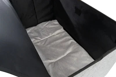 - Mit grauem Webstoff gepolstert
