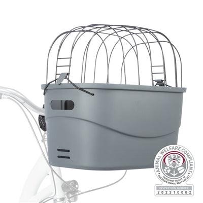 Mit Ihrem Hund unterwegs zu sein war noch nie so einfach und stilvoll. Mit dem grauen Kunststoff-Lenkerfahrradkorb von Trixie können Sie Ihren Hund sicher und bequem vorne auf Ihrem Fahrrad mitnehmen. Dieser robuste Kunststoffkorb ist für die Lenkermontage konzipiert und eignet sich perfekt für kurze Fahrten in der Stadt oder einen gemütlichen Spaziergang durch den Park. Geeignet für kleine Hunde und Welpen. Dieser Fahrradkorb wird ohne Befestigungsmaterial geliefert; Sie können es hier bestellen .