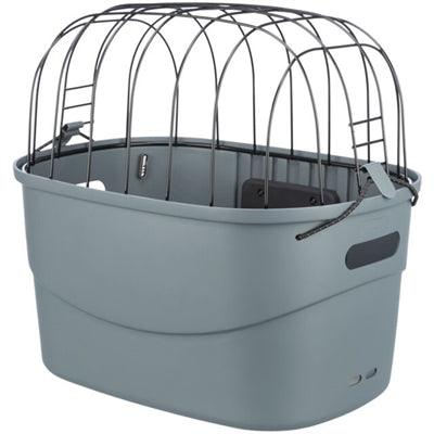 Der Fahrradkorb besteht aus einem robusten Kunststoffbehälter mit einem stabilen Metallgitterdeckel. So bleibt Ihr Hund sicher an seinem Platz und kann die Natur genießen. Im Inneren verhindert eine Antirutschmatte, dass Ihr Hund beim Radfahren ausrutscht. Außerdem gibt es einen Befestigungspunkt für eine Kurzleine oder Hundeleine, sodass Sie Ihren Hund sicher anschnallen können.