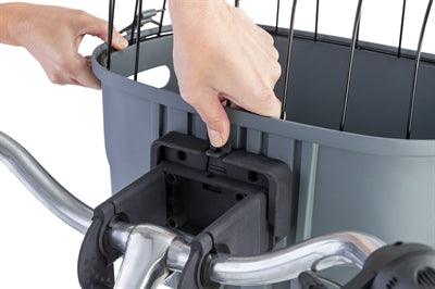 Der Fahrradkorb lässt sich dank des Schnellverschlusses leicht abnehmen. So können Sie den Korb schnell mitnehmen oder ihn beim Abstellen Ihres Fahrrads einfach abnehmen. Der Korb ist mit einer universellen Lenkerhalterung (nicht im Lieferumfang enthalten) am Lenker zu befestigen.